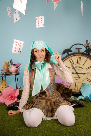 Say hello to your inner garden guardian. This pastel gingham bunny bonnet, crafted from light cotton, features long ears and satin ribbon ties for a dreamy look. Tie it around your chin and transform into a curious kitty straight from a secret flower-filled glade.