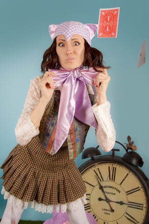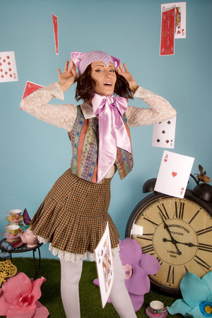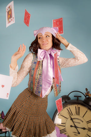 Say hello to your inner garden guardian. This pastel gingham cat bonnet, crafted from light cotton, features gentle pointed ears and satin ribbon ties for a dreamy, delicate look. Wrap it around your chin and transform into a curious kitty straight from a secret flower-filled glade.