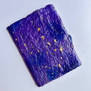 This petite journal, measuring around 4x6", is a little bundle of handmade magic. Its cover features handmade and hand painted paper with gold flecks under a glossy touch of Mod Podge enchantment. Inside, you’ll discover 30 sheets (that’s 60 pages!) of blank paper—perfect for doodles, daydreams, dragon sightings, or secret spells. The pages are carefully glued into the cover with archival-quality glue to keep your musings safe for years to come.